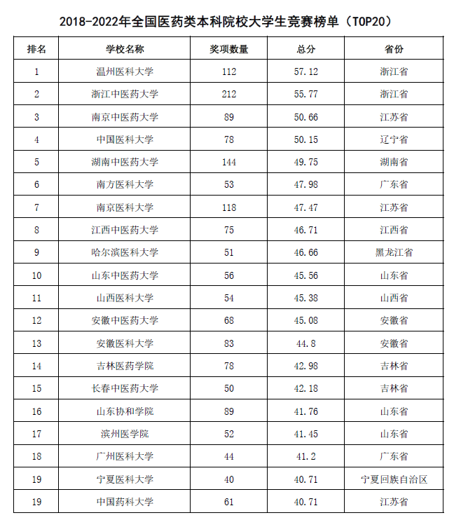3月22日,中国高等教育学会高校竞赛评估与管理体系研究专家工作组发布《2022全国普通高校大学生竞赛分析报告》,黑料吃瓜网 在全国医药类本科院校大学生竞赛排行榜中连续四年排名第一。