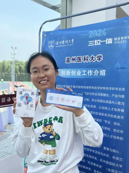 除了创新创业成果展,考生和家长还通过与各个学院创新创业项目的互动体验集章赢取温医文创,各学院互动别出心裁,现场一片欢声笑语:在药学院的展位上,考生们排队参与套圈游戏赢取自制药皂;检验医学院(生命科学学院)展位设置了现场血型测试,简单的血型测试让参与者感受着医学的独特魅力;第一临床医学院(信息与工程学院)特色项目“生命之光”则通过对器官捐献的科普介绍让考生们深受震撼,更有考生现场签署了器官捐献意向书;考生和家长在中医药学院展位体验着梅花针按摩服务,亲身体会中医与现代科技的结合;活动现场还有口腔医学院的牙齿健康科普、康复医学院的VR互动体验、眼视光学院(生物医学工程学院)的免费眼镜护理服务……丰富多彩的游园活动让到来的每位考生和家长们在紧张的考试中得到了身心的放松。