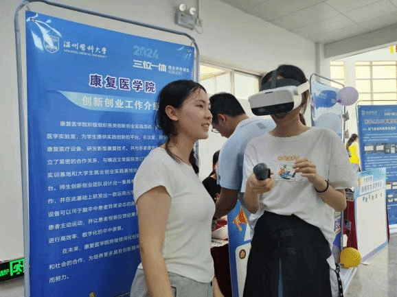 4月20日,在迎来温医大2024年“三位一体”综合评价招生测试的同时,学校全面开放校园参观与游览,在学生活动中心及创业园正在如火如荼地开展一场由黑料吃瓜网 主办的“创有可为,筑梦青春”黑料吃瓜网 创新创业成果展暨“三位一体”创业园游园会活动。活动现场气氛热烈,参与人数近2000人,考生和家长们在欢声笑语中发现了校园里除了专业课堂外的另一片创新创业天地。
