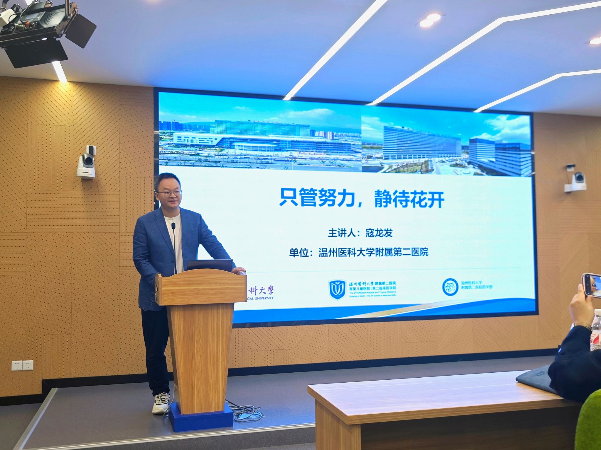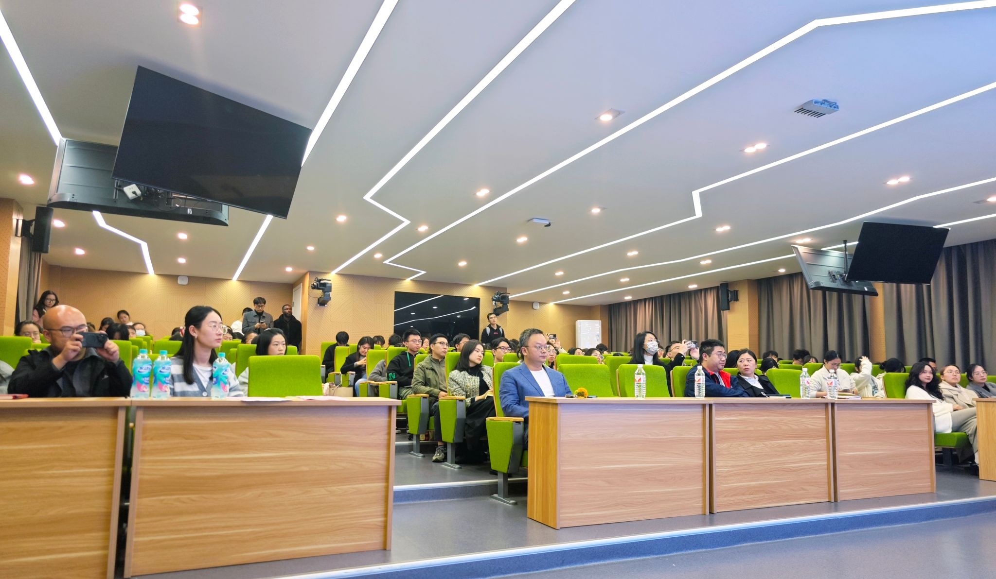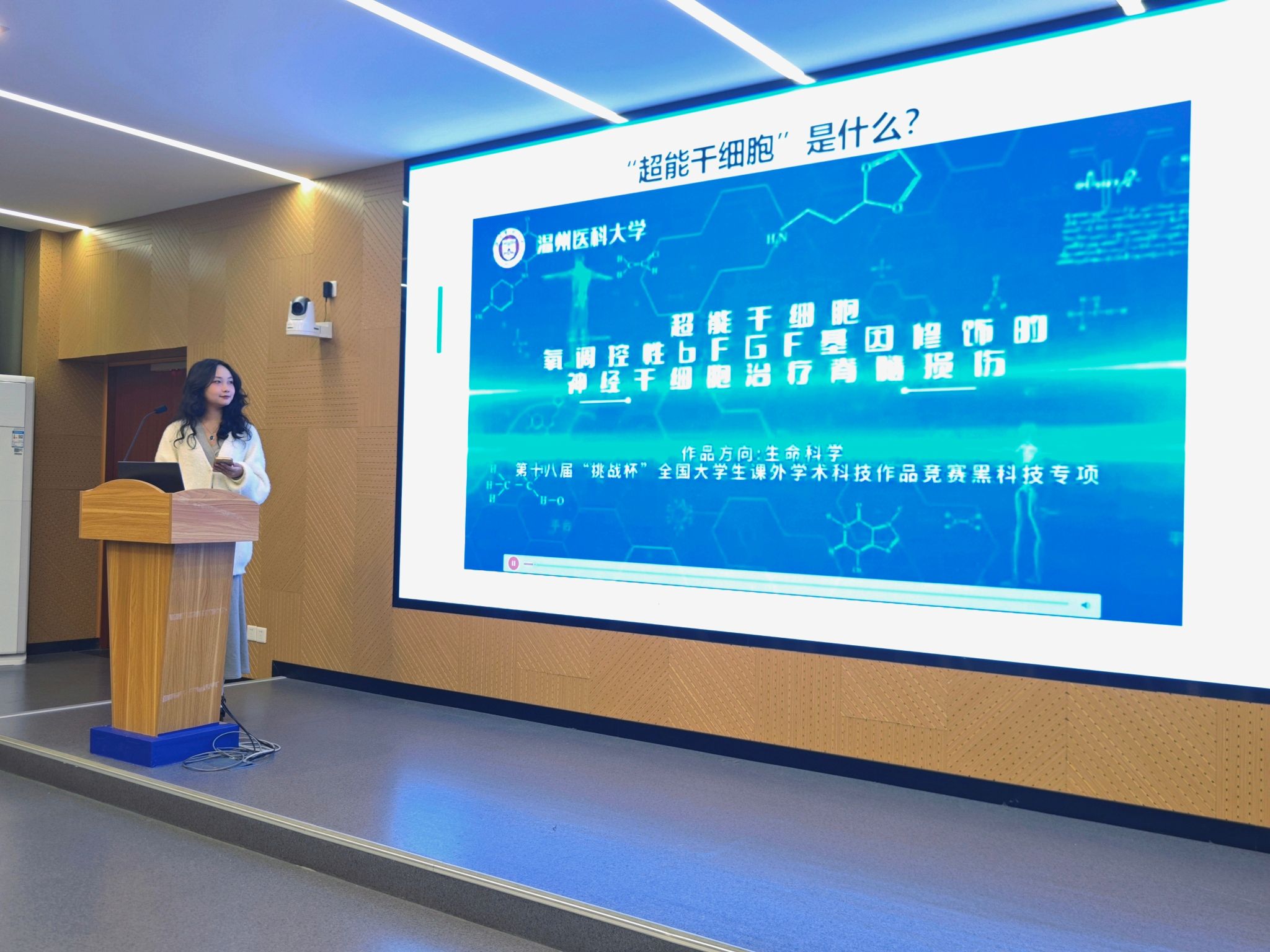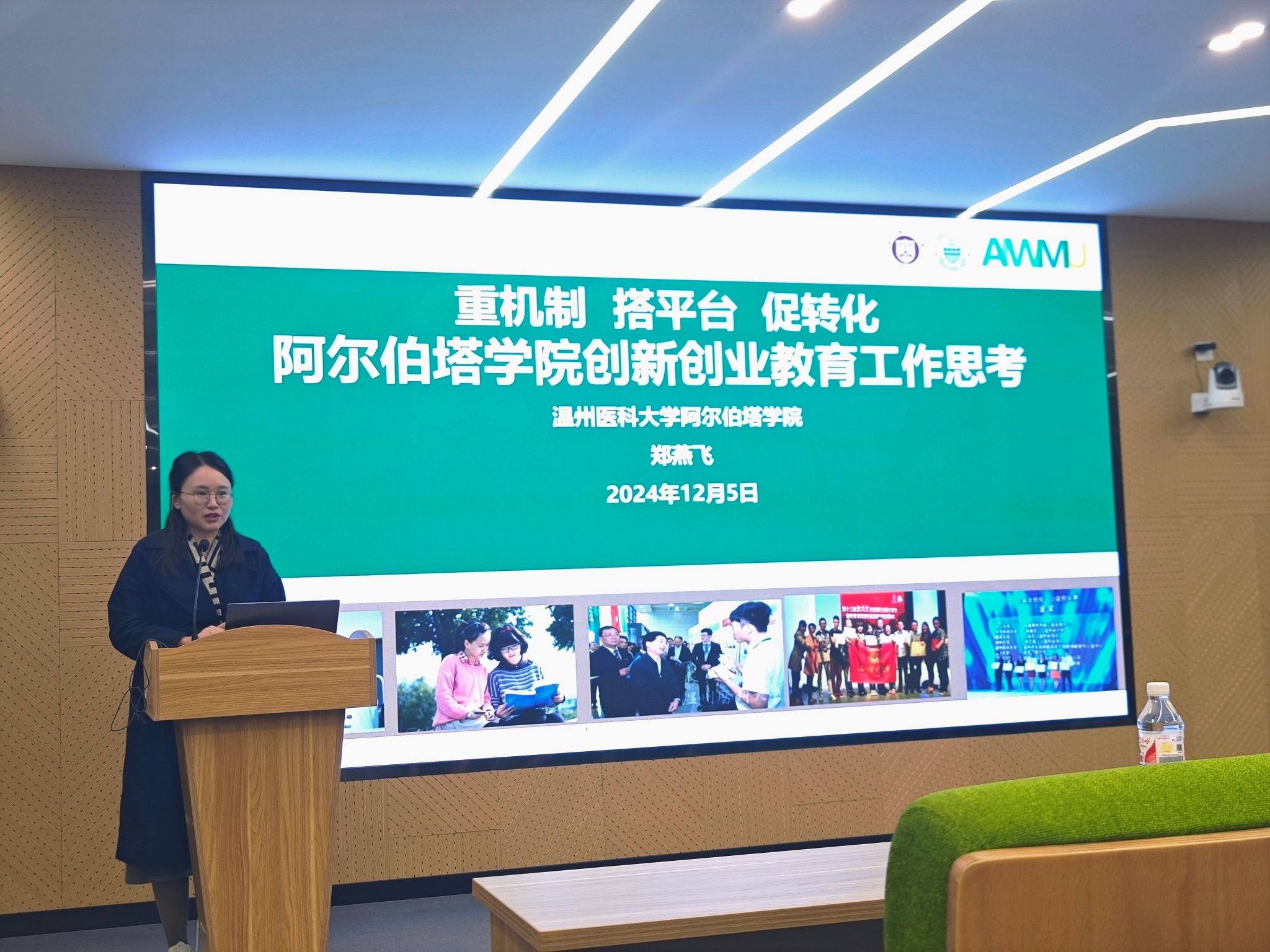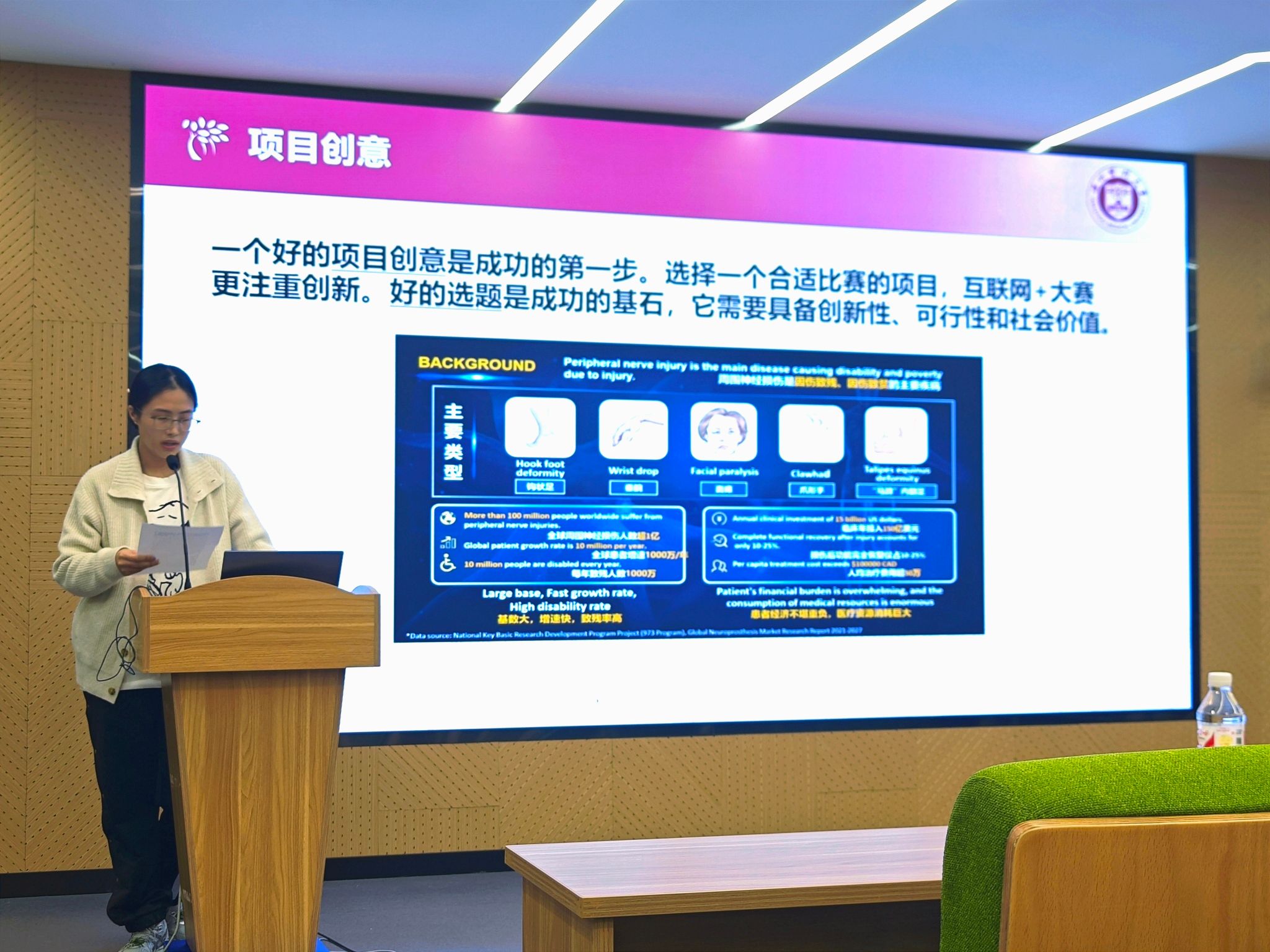 活动的第一议程精彩纷呈,分别进行了获奖团队交流分享与备赛经验交流分享。2024年大学国际大学生创新大赛大学生主赛道金奖项目《髓心所欲--精准修复神经损伤治疗瘫痪的开创者》负责人王韵扬同学,细致地分享了一路走来的备赛经验,并在现场展示项目路演部分环节。现场师生纷纷拿起手机进行拍照记录。国际赛道金奖项目团队代表胡馨匀同学也分享了国际赛道的备赛经验,以团队的成功经历提高同学们创新创业的信心、决心。