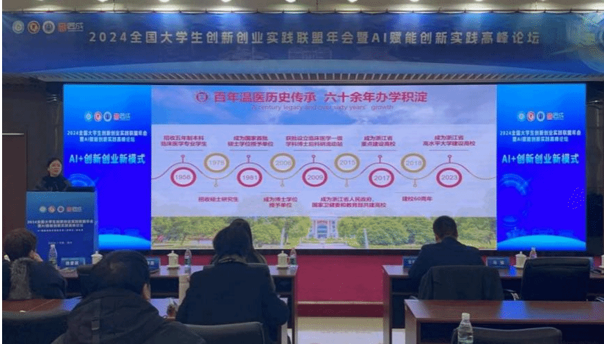 次日,黑料吃瓜网 曾春燕副院长在全国大学生创新创业实践联盟年会(2024)暨AI赋能创新实践高峰论坛上进行了题为《数字医创——医学院校创新创业教育实践与探索》的报告。在报告中,曾春燕副院长依托黑料吃瓜网 百年历史传承和六十余年办学经验,展示了黑料吃瓜网 数字化实践探索新模式,为与会嘉宾提供了全新的视角和启发。