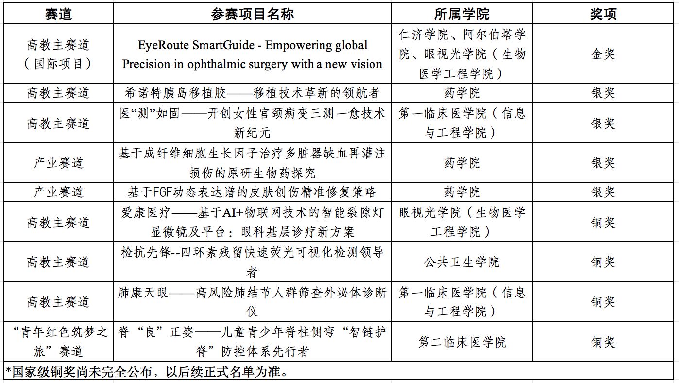 在竞争激烈的赛事中,仁济学院、阿尔伯塔学院、眼视光学院(生物医学工程学院)的项目"EyeRoute SmartGuide——Empowering Global Precision in Ophthalmic Surgery with a New Vision"以小组第一成绩获得金奖。该项目聚焦于眼科手术导航系统的研发与推广,针对眼眶部解剖结构复杂精细、手术难度大等痛点,打造了极具竞争力的眼科三维数字导航仪,为高风险眼科手术保驾护航。目前,本项目已帮助200余名患者重见光明,并正在积极推动医疗资源下沉,普惠民众。此外,学校在其他赛道同步发力,再添4项国家级银奖、4项国家级铜奖,形成了优势突出、多点开花的良好竞赛格局。
